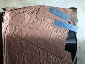Aucune rareté, mais certaines sont belles vous le savez bien. J’ai toujours été fasciné par la qualité de leur papier. La carte employée est à la fois fine et rigide. L’avantage de ce matériaux est qu’il n’absorbe pas l’humidité contrairement aux pochettes en carton que les spécialises vendent aujourd’hui. Etrangement, certains disques 30cm sont emballés dans des feuilles de papier marron. Pourquoi ne pas avoir remplacé ces pochettes manquantes? D’autant que l’utilisation de papier collant bleu laisse à penser qu’il s’agit de réparations anciennes ; quelle époque, années quarante ou cinquante?